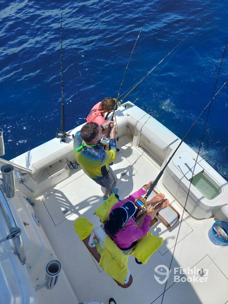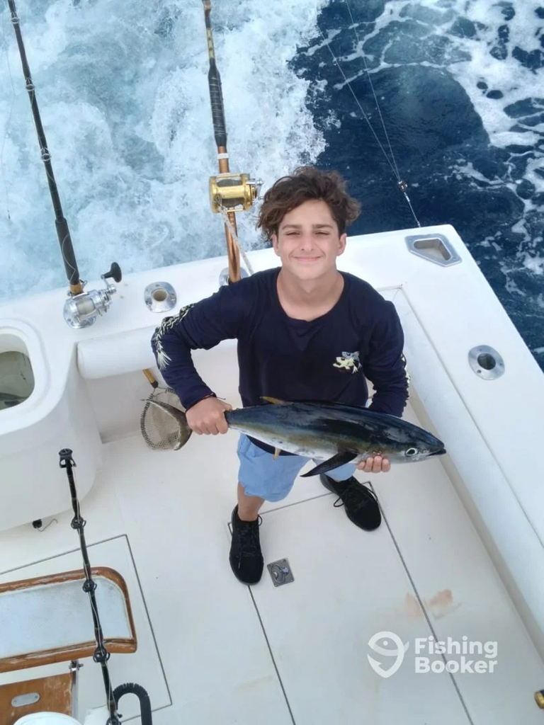 In addition to thrilling action scenes, the gallery also displays behind-the-scenes details. For example, you can see the spacious 35’ Cabo Express deck and the comfortable air-conditioned cabin. Moreover, the well-equipped kitchen and private bathroom highlight convenience and ease. Because these images focus on comfort, families can clearly imagine a relaxing day at sea. Likewise, snapshots of kids holding their first catch prove Reel Job Cabo welcomes all ages and skill levels. As a result, the gallery inspires confidence for seasoned anglers and beginners alike.